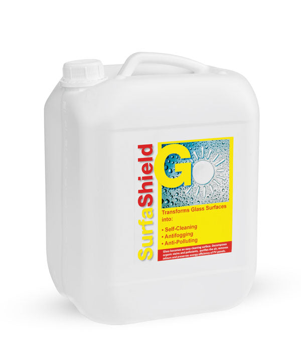 SurfaShield G is a water based formula that creates a coating that absorbs ultraviolet light and decomposes any pollutants - Glass surfaces become self-cleaning, super-hydrophilic and anti-fogging.
